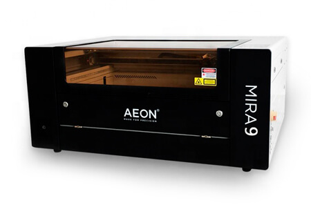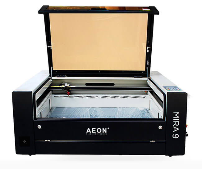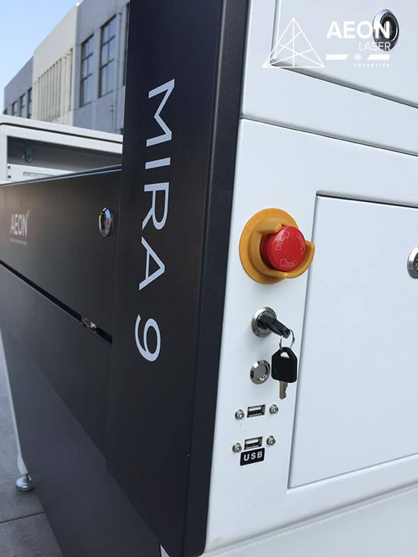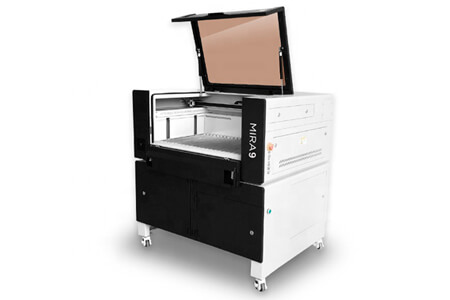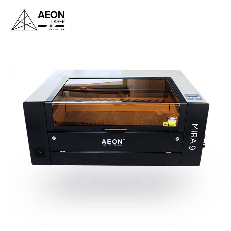 La MIRA 9 es una máquina láser de escritorio para uso comercial, con un área de trabajo de 900 x 600 mm diseñado para tener más espacio dentro de la cabina y albergar trabajos con piezas de mayores dimensiones. En su interior cuenta con un chiller de agua integrado siendo muy fácil controlar la temperatura con un indicador para un uso continuo sin inconvenientes. El compresor de aire y el ventilador de escape son más grandes que los modelos anteriores permitiéndonos ampliar la potencia del tubo láser hasta 130 W para hacer crecer su negocio con un potente equipo láser comercial en lugares reducidos.