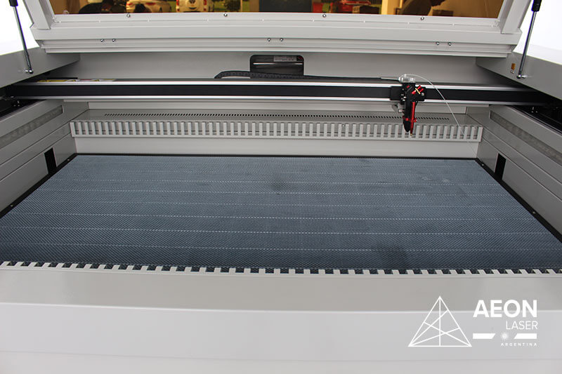 La estructura del equipo es robusta, fuerte y confiable, equipada con un área de trabajo de 1400 x 900 mm con soporte de lamelas de fábrica opcionalmente una mesa de corte tipo panal de abejas, un chiller modelo 3000 o 5000 nos permite instalar un tubo láser de vidrio de hasta 150 W. Adicionalmente podemos optar por un tubo metálico o cerámico. El eje Z motorizado se amplia hasta 200mm de subida/bajada permitiéndonos procesar materiales u objetos de gran tamaño, en combinación con el pass-through y autofoco sónico.