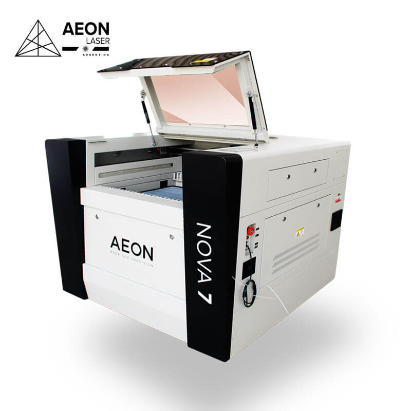La NOVA 7 es una máquina de grabado y corte láser comercial de tamaño pequeño. El área de trabajo es de 700 x 500 mm con lamelas o mesa de corte tipo panal de abejas, disponible con tubo láser de vidrio CO2 de 80W y 150W de potencia. Incluye software LightBurn de fácil operación, compresor de aire y refrigerador por agua integrado todo en uno, pass-through, autofoco y muchas más características. Este equipo es ideal para aquellos que buscan un equipo para uso comercial en lugares pequeños o reducidos.
