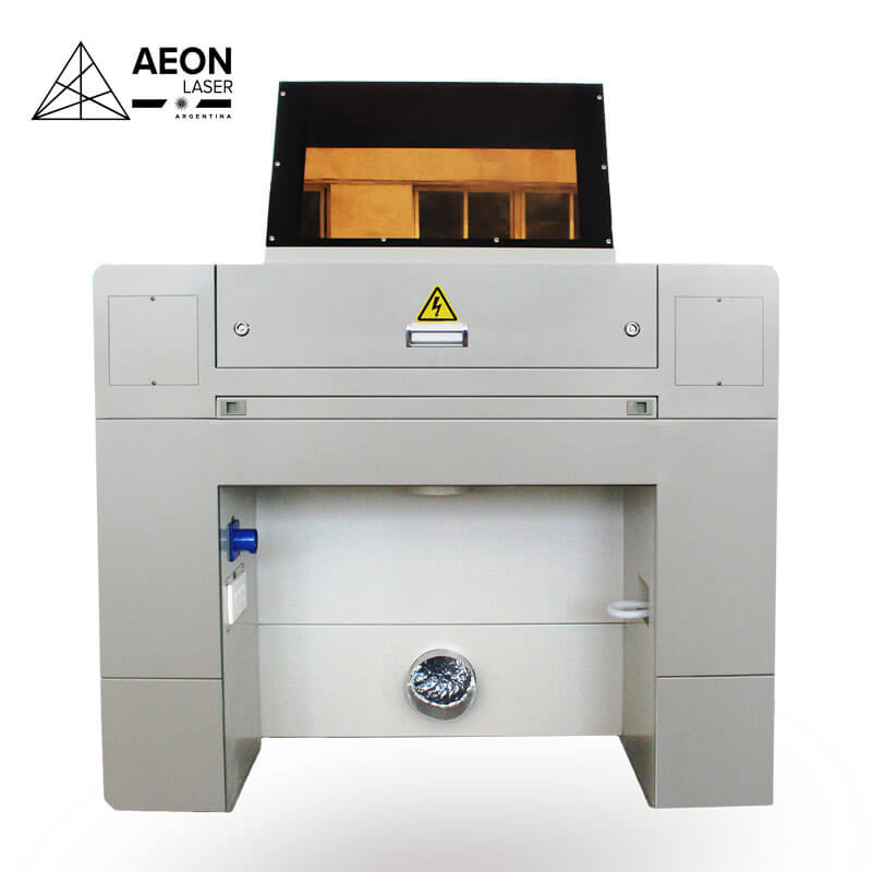 La estructura del equipo es robusta, fuerte y confiable, equipada con un área de trabajo de 700 x 500 mm con soporte de lamelas de fábrica opcionalmente una mesa de corte tipo panal de abejas, un chiller modelo 3000 o 5000 nos permite instalar un tubo láser de hasta 150 W. El eje Z motorizado se amplia hasta 200mm de subida/bajada permitiéndonos procesar materiales u objetos de gran tamaño, en combinación con el pass-through.